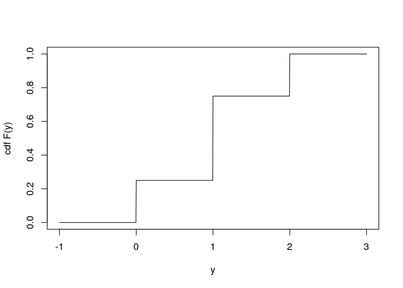 For instance, if \(Y \sim \text{binomial}(2, 0.5)\), then we can plot the cdf of \(Y\):